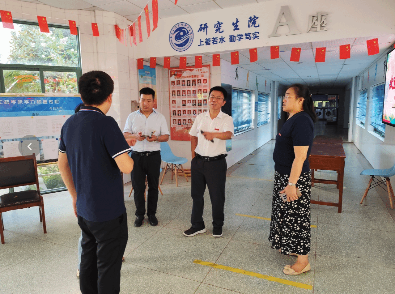 在走访期间,院领导一行对研究生公寓的各项消防安全设施情况进行了检查。叮嘱同学们要严格遵守宿舍管理规定,维护良好的寝室卫生环境;提醒员工们要增强网络安全防诈意识,注意人身及财物安全。