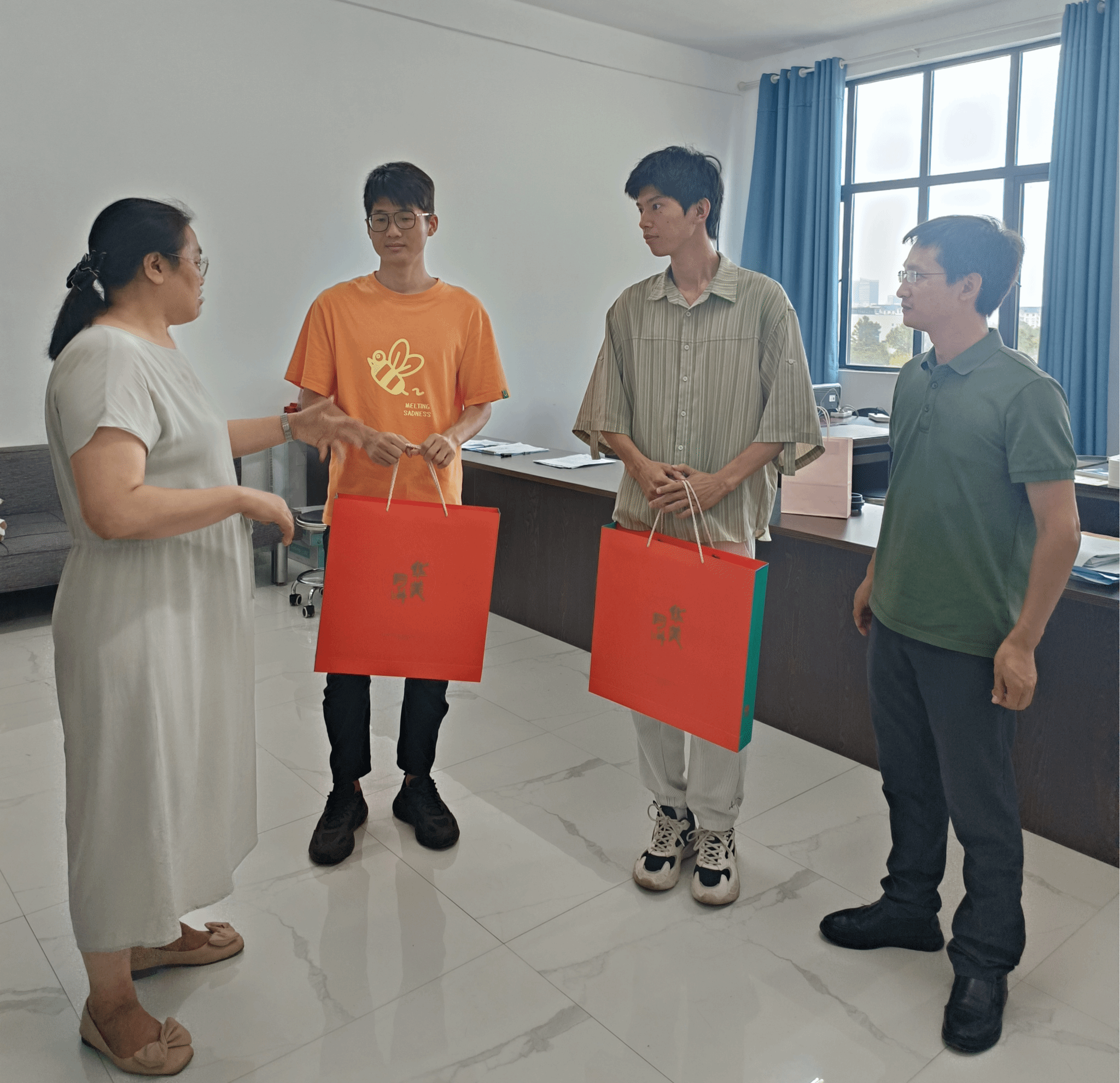随后,高丽明慰问了新入职的两位科研秘书艾鑫和高威,向他们送上了节日慰问品,欢迎他们加入公司大家庭,并表达了殷切期望。