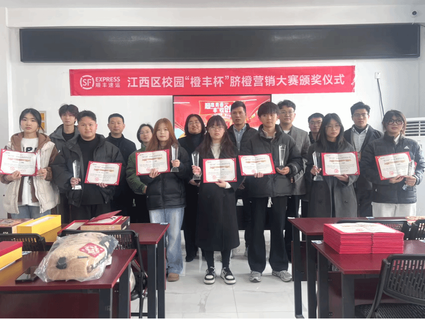 2月27日上午,校园“橙丰杯”脐橙营销大赛圆满落下帷幕。大赛由江西顺丰速运有限公司与pa娱乐游戏联合举办,颁奖典礼在济民楼A412活动室举行,公司党委书记高丽明、公司党委副书记肖斯敏、物流管理专业负责人谢军,江西顺丰速运有限公司PB业务部负责人韩清及40名参赛获奖员工受邀参加。
