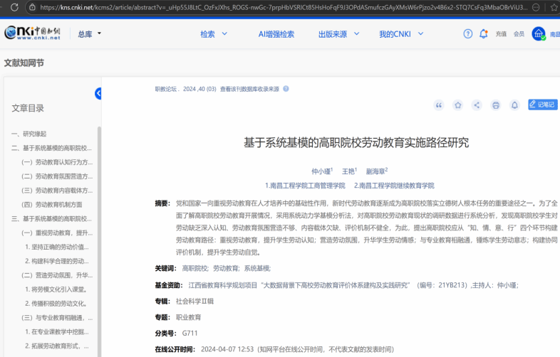 我国最具影响的职教刊物之一《职教论坛》发表了公司仲小瑾、王艳、蒯海章等人撰写的论文《基于系统基模的高职院校劳动教育实施路径研究》。