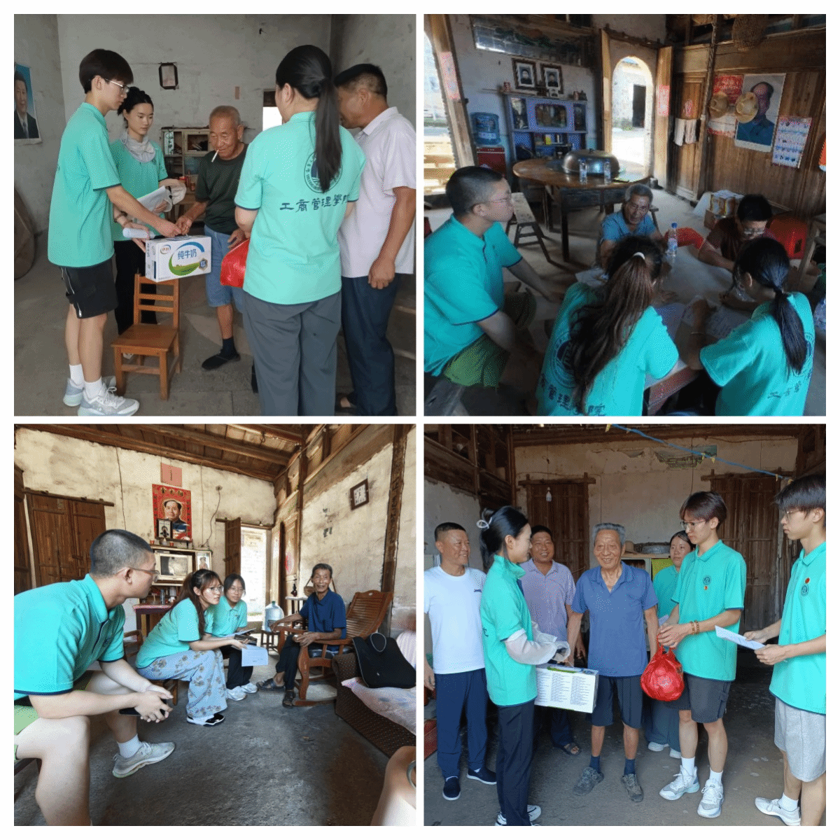 寻访红色印记,聆听初心故事。7月1日上午,实践队员满怀敬意,分组走访慰问了村内4位党龄超过50年的老党员。在老党员家中,队员们认真聆听前辈们讲述矢志不渝跟党走、在革命与建设年代艰苦奋斗的亲身经历。从入党初心到峥嵘岁月,从时代变迁到对青年的殷切期望,老党员们用朴实而深情的话语,为队员们上了一堂生动的党史教育课。实践队员细致记录访谈内容,为后续整理珍贵的“乡村红色记忆档案”积累一手资料。这份口述历史的收集,旨在保护和传承宝贵的红色精神财富。