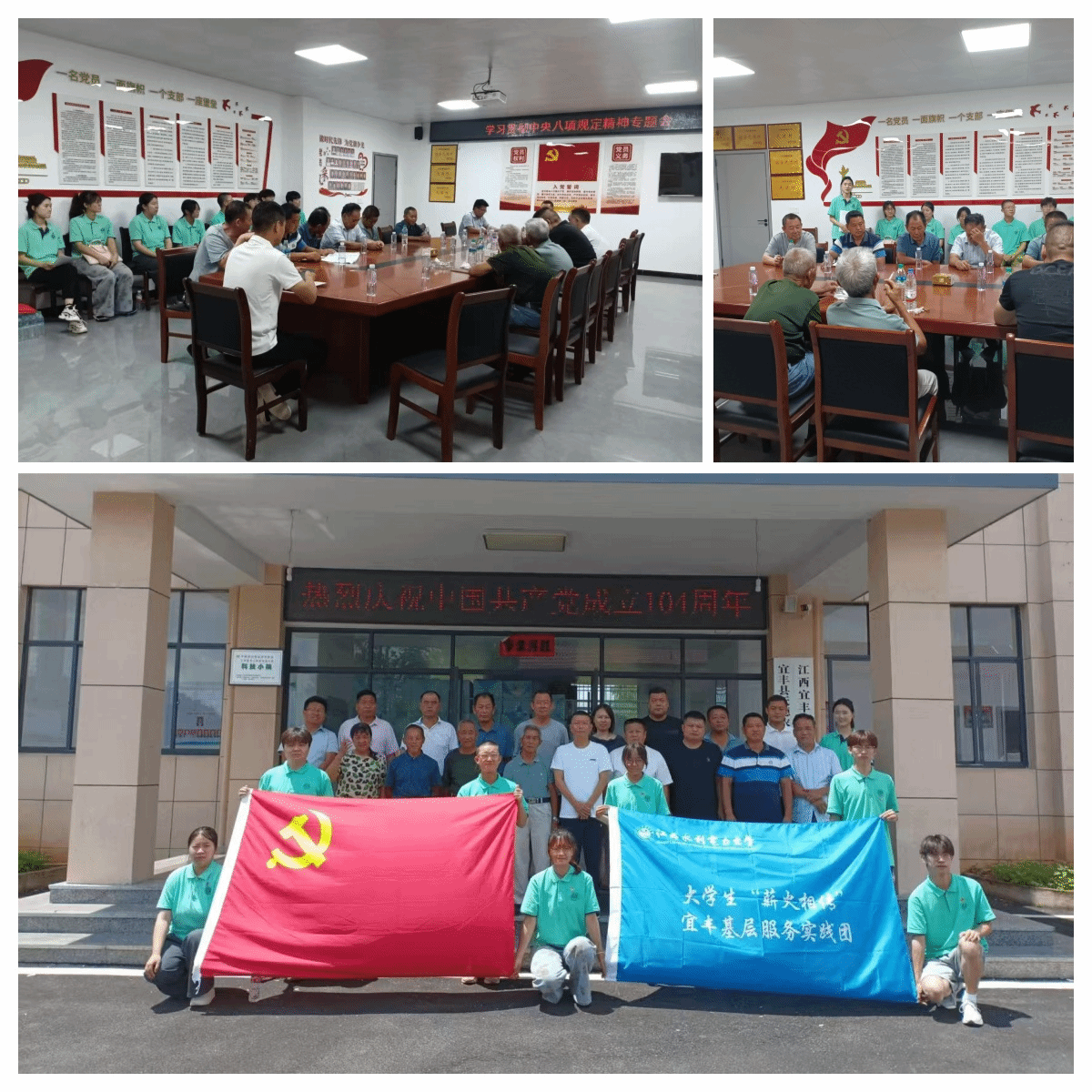 为庆祝中国共产党成立104周年,传承红色基因,厚植家国情怀,pa娱乐游戏官网老员工 “薪火相传” 宜丰基层服务实践团于7月1日深入宜丰县张家村,与当地村委会联合开展主题鲜明、内容丰富的庆“七一”实践活动。活动聚焦共庆华诞、红色寻访与乡村调研,旨在引导青年学子在实践中感悟初心使命,汲取奋进力量。