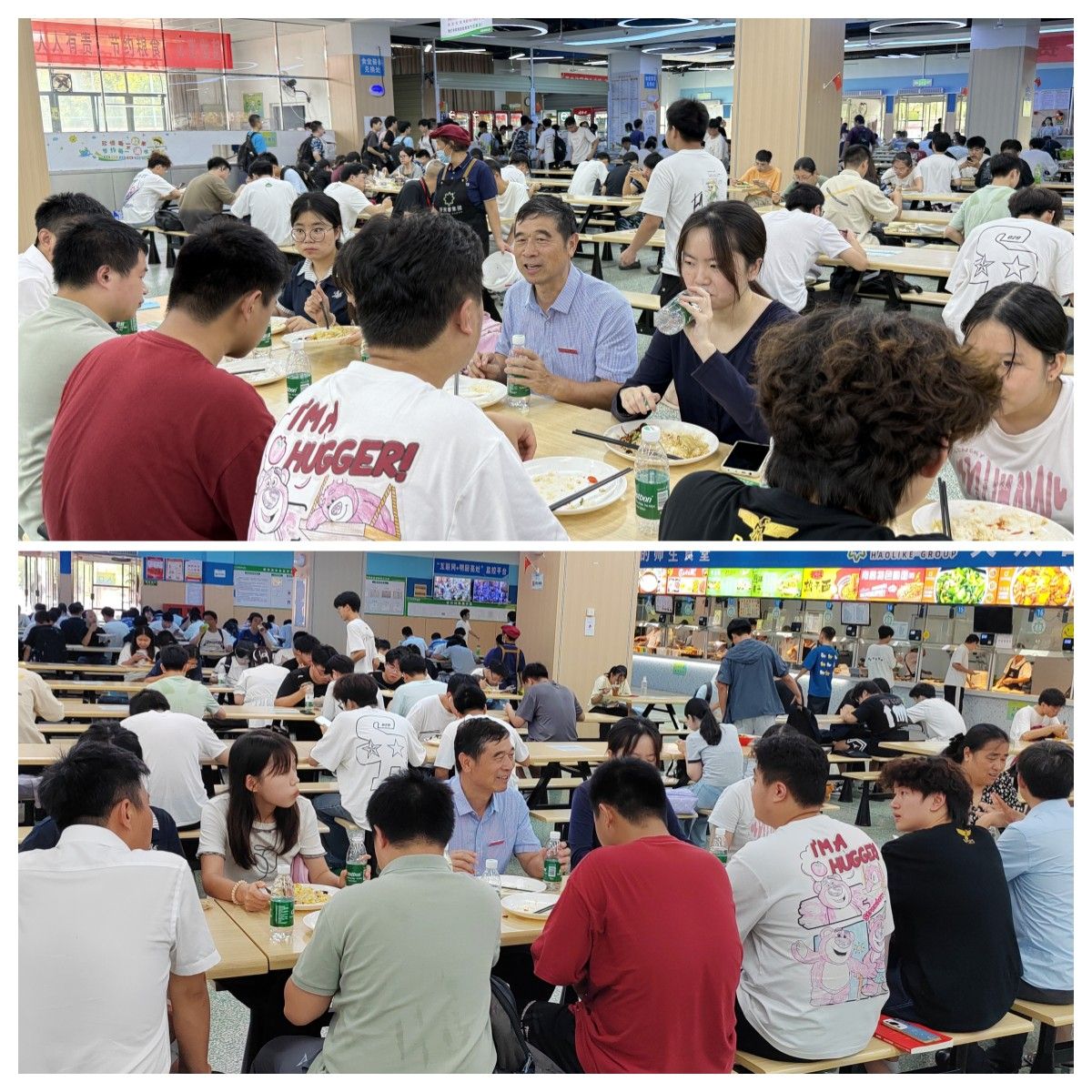主题班会结束后,吴泽俊前往员工食堂,与员工代表一起共进午餐。就餐期间,他与同学们谈心交流,倾听员工心声与诉求,听取大家对饭菜口味、质量、价格的意见与建议,并叮嘱同学们要均衡饮食、注意营养搭配,养成良好的饮食和卫生习惯。