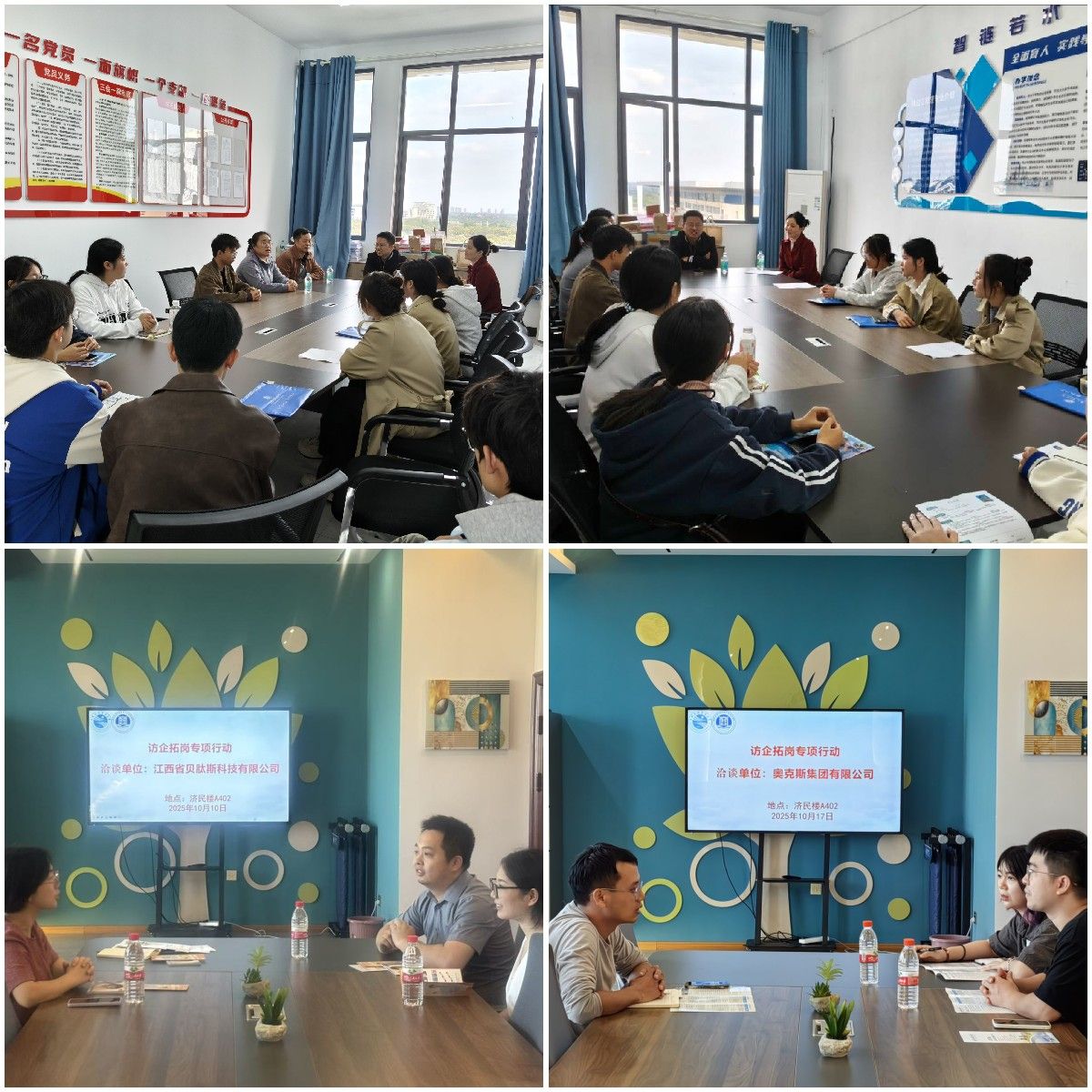 为加强校企合作,拓宽就业渠道,近日,公司开展了访企拓岗专项交流活动,一方面,公司党委书记高丽明等就业工作人员深入招聘现场同南昌正大畜禽有限公司、十足集体有限公司、南昌春勤精密技术有限公司、佛吉亚歌乐电子(丰城)有限公司、广东新锦成陶瓷集团有限公司、浙江广润通信有限公司(vivo浙江)、深圳市百腾供应链集团有限公司、江西保利物业管理有限公司、内蒙古蒙牛乳业(集团)股份有限公司、江西白鸥文化创意有限公司、南昌熙颜贸易有限公司、深圳市华展国际物流有限公司、太平洋房地产经纪有限公司、南昌利泽电子有限公司、浙江贝咖供应链管理有限公司、江西省宏彩互动网络科技有限公司、南昌康桥健康体检中心有限公司、九江银行股份有限公司南昌分行等多家公司的招聘人员进行面对面交流。另一方面,邀请江西益丰大药房连锁有限公司、江西省贝肽斯科技有限公司、奥克斯集团有限公司的招聘人员入校洽谈合作。