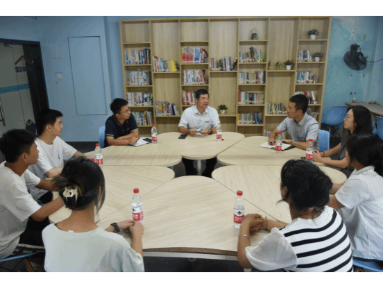 吴泽俊在学一栋阅读室与新生代表座谈交流,对新生的到来表示热烈欢迎,关切地询问了新生个人情况、志愿报考初衷、入学等情况,为部分家庭经济困难员工送上“爱心大礼包”等慰问品。叮嘱新生要合理安排好学习和生活,尽快适应大学的环境;要遵守校纪校规,服从公司管理,积极参与校园活动;勉励新生困难是暂时的,幸福是奋斗出来的,要珍惜大学时光,发奋学习,刻苦钻研,全面提高自身综合素质。