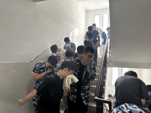 为保证演练活动有序进行,确保人员财产安全,在消防演练前,公司员工工作办公室责任教师就本次活动的人员安排、演练步骤、疏散要求等制定了详细的安排。下午13:00,浓烟弥漫楼道,急促的警报声响起,同学们迅速地用湿毛巾捂住口鼻,在工作人员的指挥下通过消防通道有序、快速地撤离楼栋,按预定的疏散路线撤离到楼栋楼下空地迅速集合,相关工作人员立即清点人数,并检查现场情况。