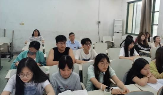 在南B108教室,吴泽俊与23级应急管理专业的同学们一道聆听马克思主义公司周志鹏老师授课的《思想道德与法治》课程。课堂上,吴泽俊聚精会神听课,不时拿起笔来做记录。课后,他与该教师进行了交流,并对其认真的教学态度、丰富的教学内容、多样的教学方式表示了肯定。