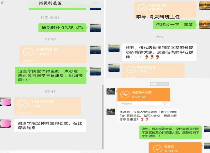 期间,公司党政领导高度重视,多次赴南昌大学第一附属医院高新医院看望肖灵利及其家人,及时了解灵利的术后状况和恢复情况。在得知肖灵利同学家庭贫困而无力支付高额医疗费用的情况下,公司党政领导决定,面向全院师生发出暖心帮扶,点亮生命之光的捐款倡议,共同援助肖灵利同学战胜病魔、早日康复。病魔无情,人间有爱。公司收到含研究生在内的48个班级、7个教研室共计38995.5元的爱心捐款。