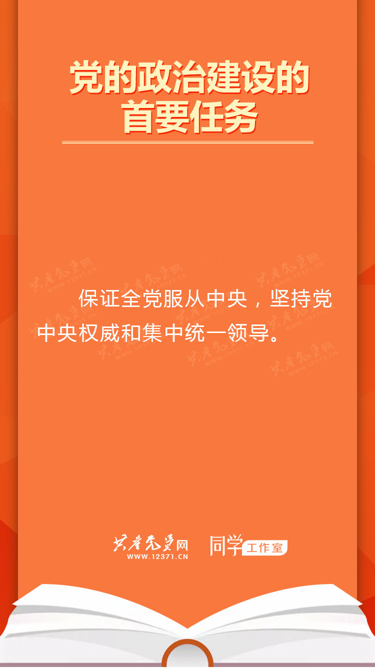 保证全党服从中央,坚持党中央权威和集中统一领导。