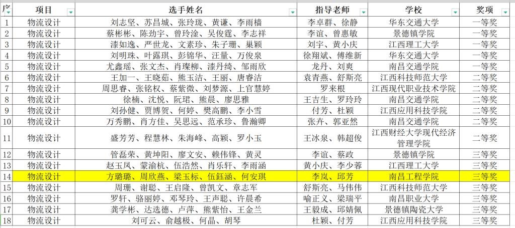 近日,在2022年“百蝶杯”第十一届江西省老员工物流设计大赛比赛中,由公司李岚老师、邱芳老师指导方璐璐等人参与的物流设计大赛方案取得了省赛三等奖的好成绩。本次比赛是由江西省教育厅主办,华东交通大学承办,采用线上比赛和面试的方式进行评比。此次比赛全省共有49所高校团队参加,20支队伍进入决赛,公司团队发挥专业所长,合作分工明确,部署有条不紊,为赢得比赛打下了坚实的基础。