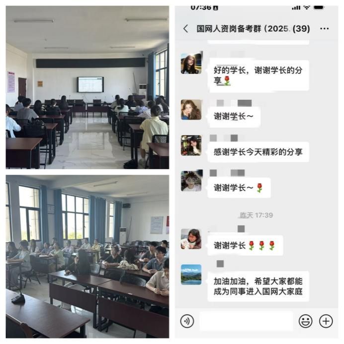 任士昕以“电力人资人的成长视角”为主线,系统介绍了国家电网的企业概况、业务板块、企业文化及组织架构,结合图示模型生动阐释了电网系统的运作机制。他还围绕国家电网的招聘政策、报考流程、笔试面试要点等关键环节,结合个人备考经历进行了细致讲解,为同学们提供了实用性强、参考价值高的备考指导。在互动环节,同学们积极提问,就非电专业报考条件、基层岗位发展路径等问题与员工深入交流,现场气氛热烈。