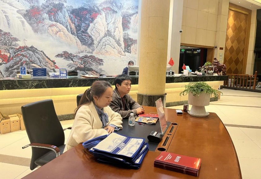 在员工接待工作中,袁梦与战凯两位同学提前熟悉工作流程,主动为返校员工指引路线、介绍公司发展成就。他们以真诚的服务、专业的讲解,让返校员工深切感受到母校的关怀。